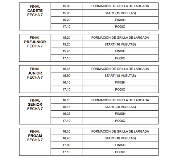 Hoy viernes habrán prácticas en tandas y mañana clasificación, más serie y final de la Fecha 7. El domingo habrá serie y final correspondiente a la Fecha 8.