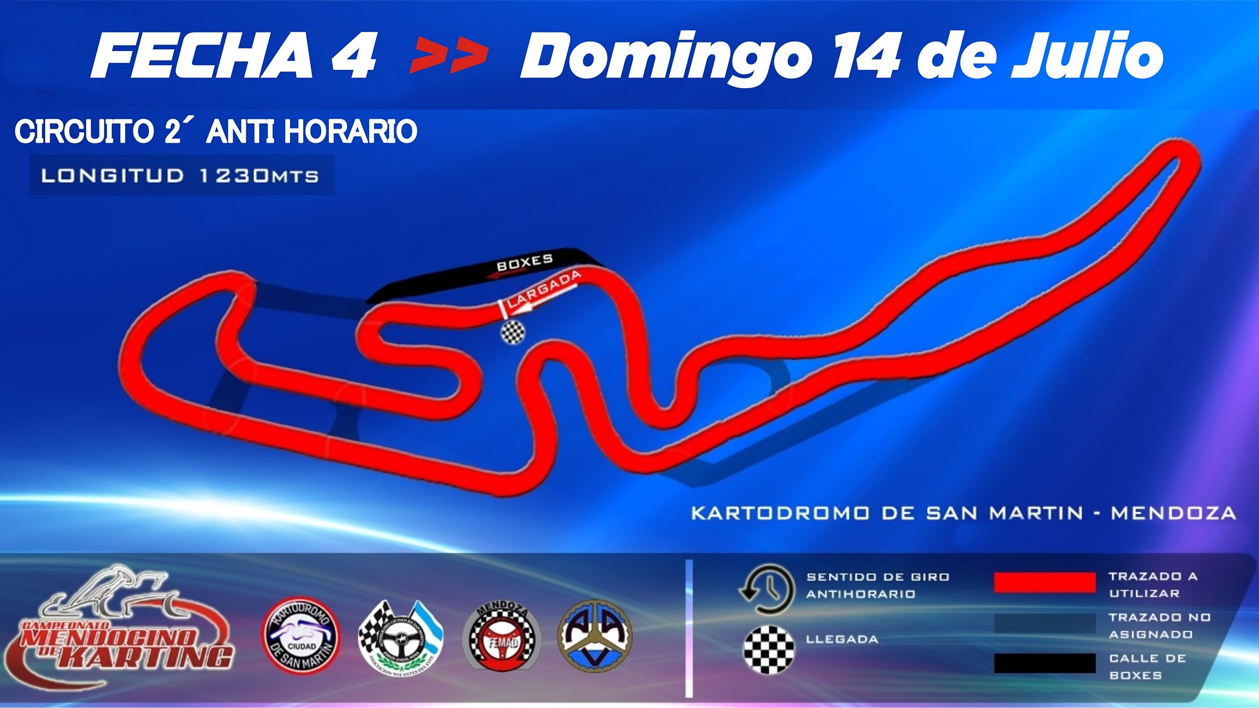 AVE informó hoy que la Fecha 4 se realizará el Domingo 14 de Julio en San Martín, estrenando esta vez el circuito número 2´ en sentido “anti horario” (es el tradicional trazado largo, pero al revés).