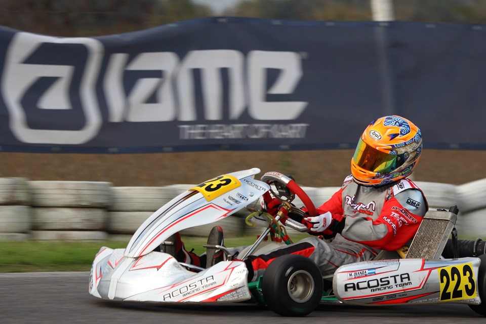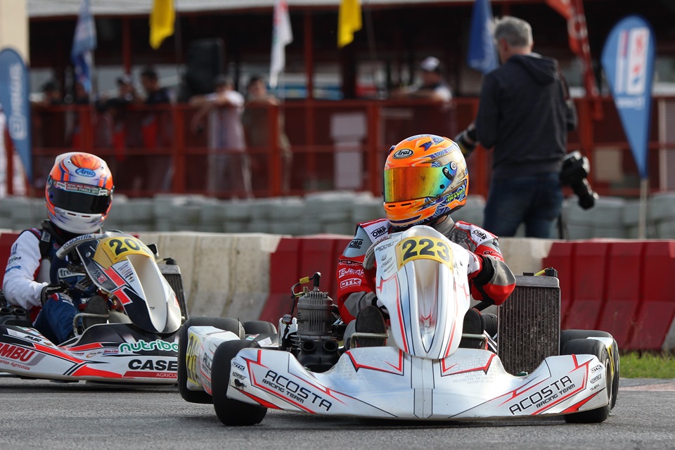 El domingo no pudo repetir su desempeño, pero igual fue positiva su actuación al ganar tres lugares en la carrera final para cerrar su fin de semana con un 5º puesto con el kart que le entregó el equipo Acosta Racing Kart. También ganó el bonaerense Santiago Biagi