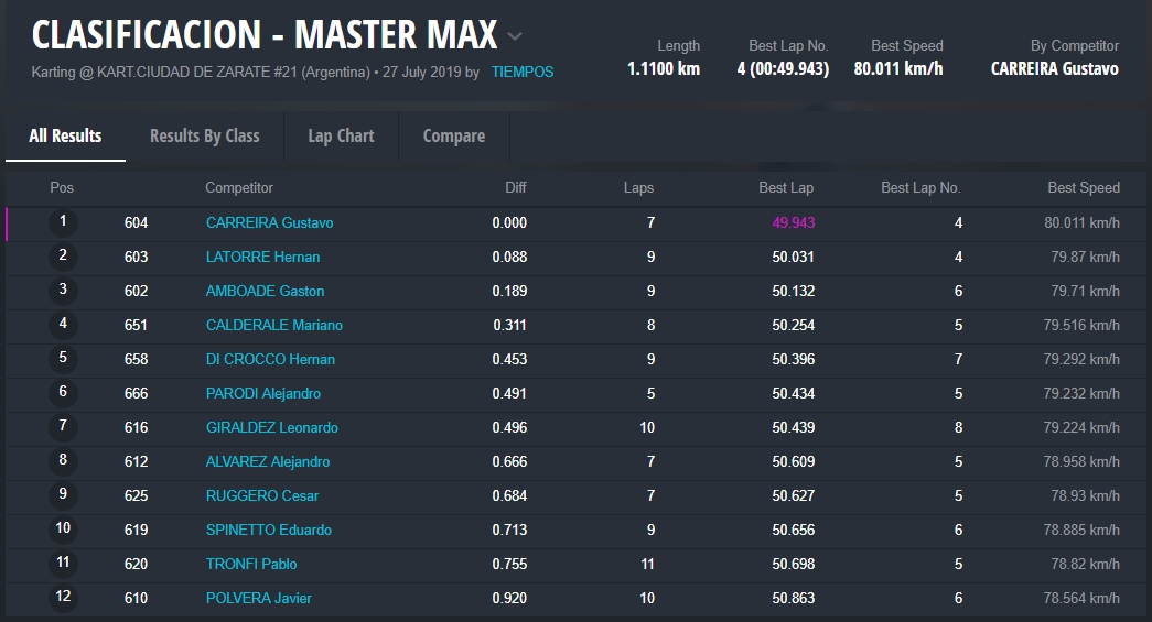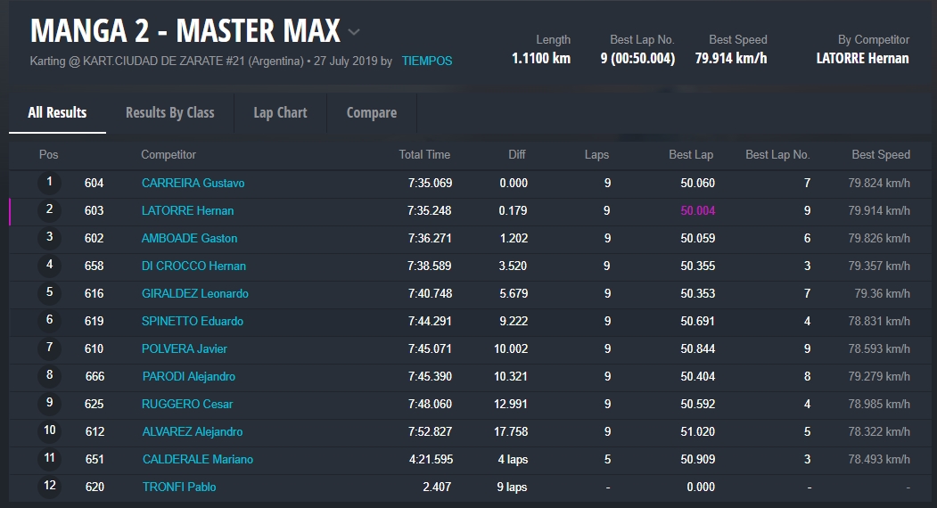 El cuarto lugar fue para Fernando Rossi (Zaffaroni Kart), seguido por Adrián Amighini, Maxi Lacognata y Daniel Del Bianco.