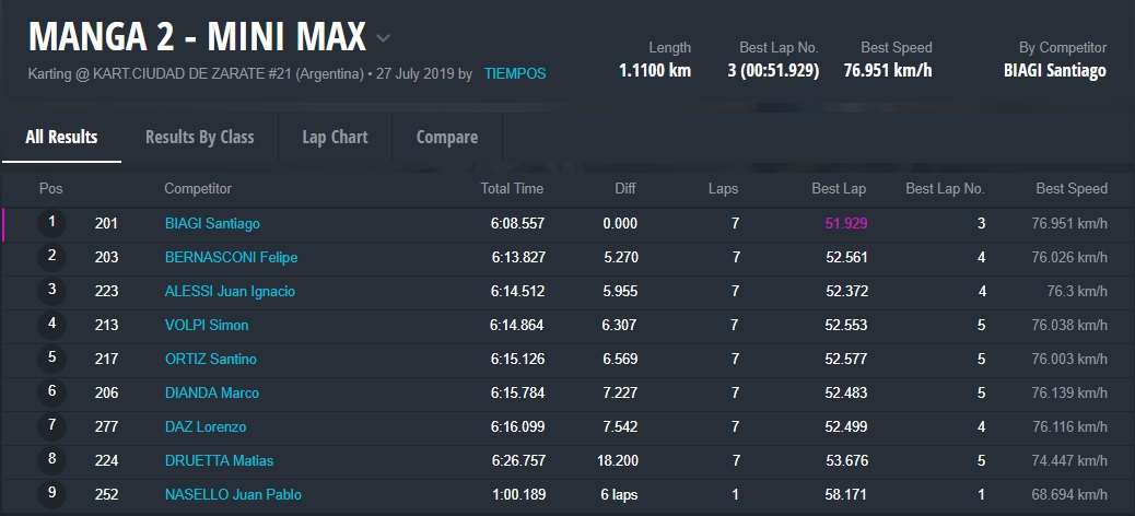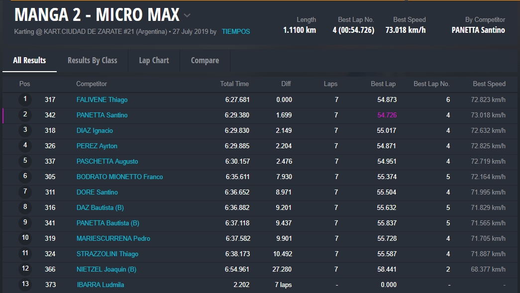 En la categoría Micro Max venció Thiago Falivene, pero tras recibir un recargo por trompa, la victoria quedó para Santino Panetta. En la Mini no hubo dudas y Santiago Biagi tuvo un finde con puntaje perfecto.