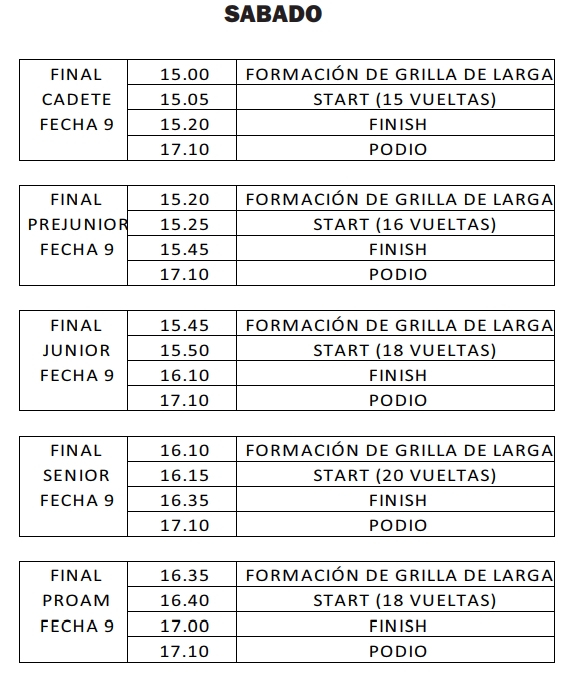 Los horarios para las carreras finales serán los siguientes: