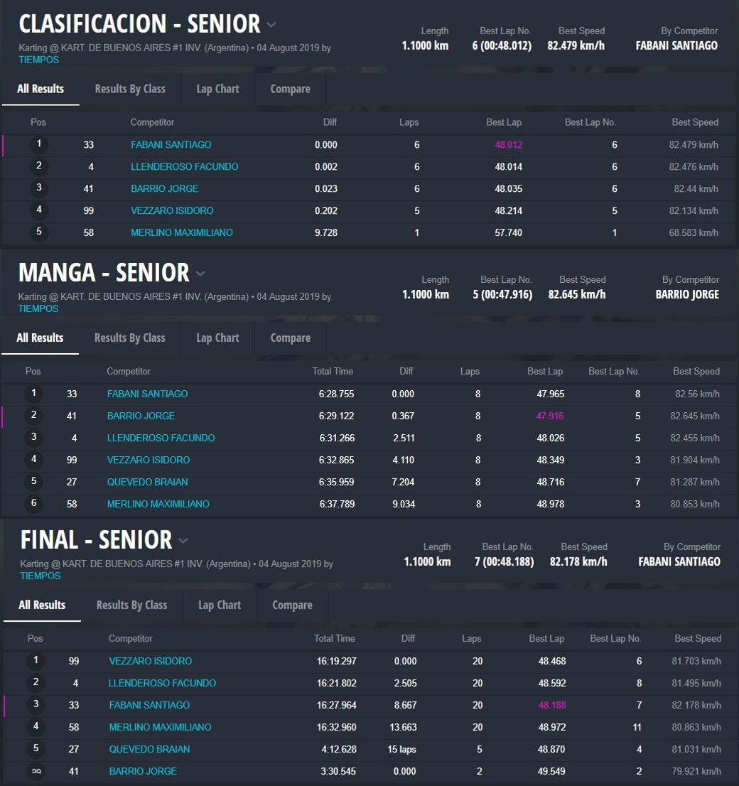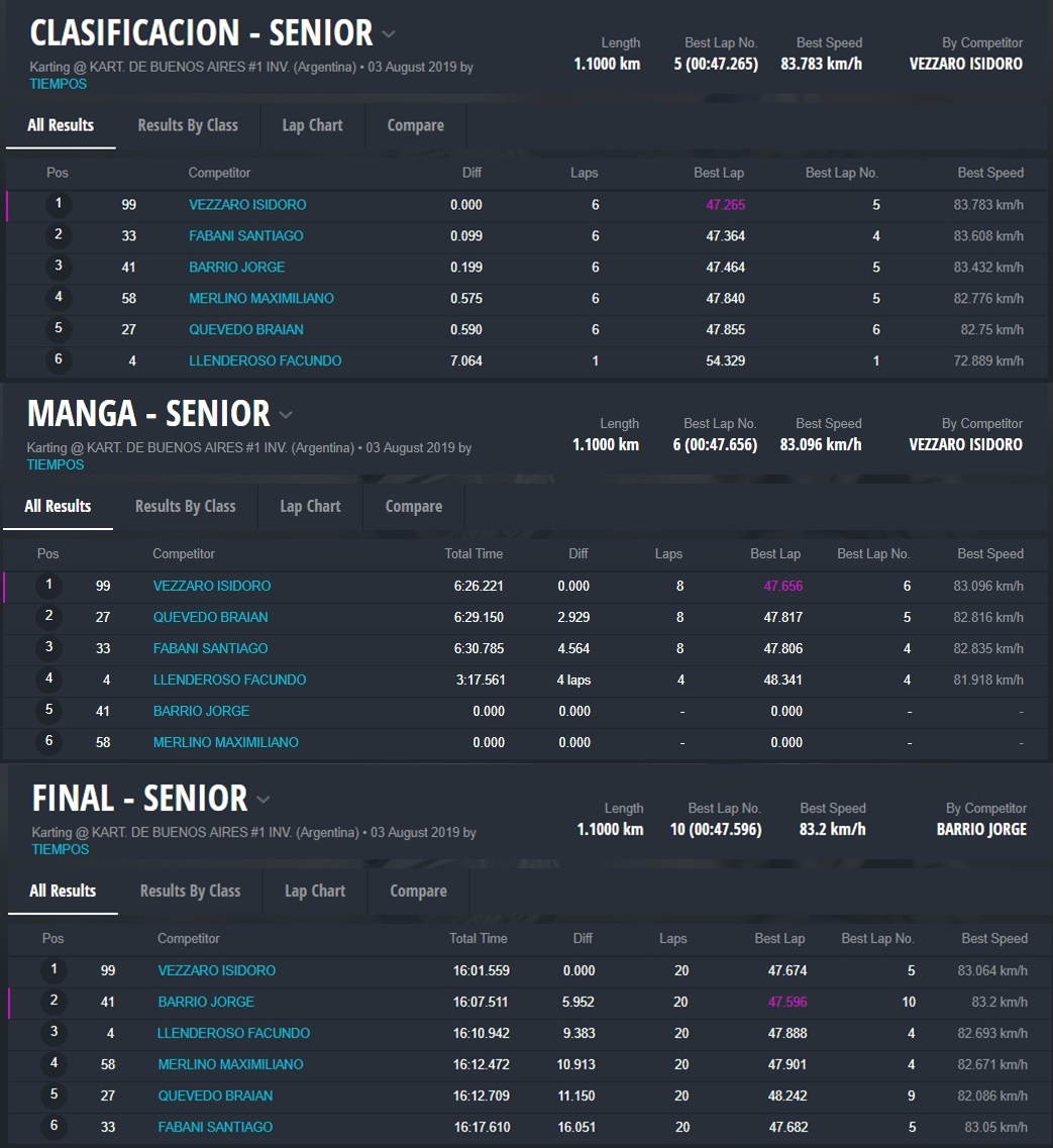 Fabani era que seguía en la lista, pero ese retraso lo dejó muy atrás y fue Isidoro Vezzaro quien no se inmutó para nada, ganó la carrera con comodidad y, pese a tener una fecha menos, le alcanzó para gritar campeón. Gran año de Vezzaro y del equipo Rossikart que dirige Martín Duhalde que logró de esta forma su tercer título en el IC Series. Fabani quedó como subcampeón.