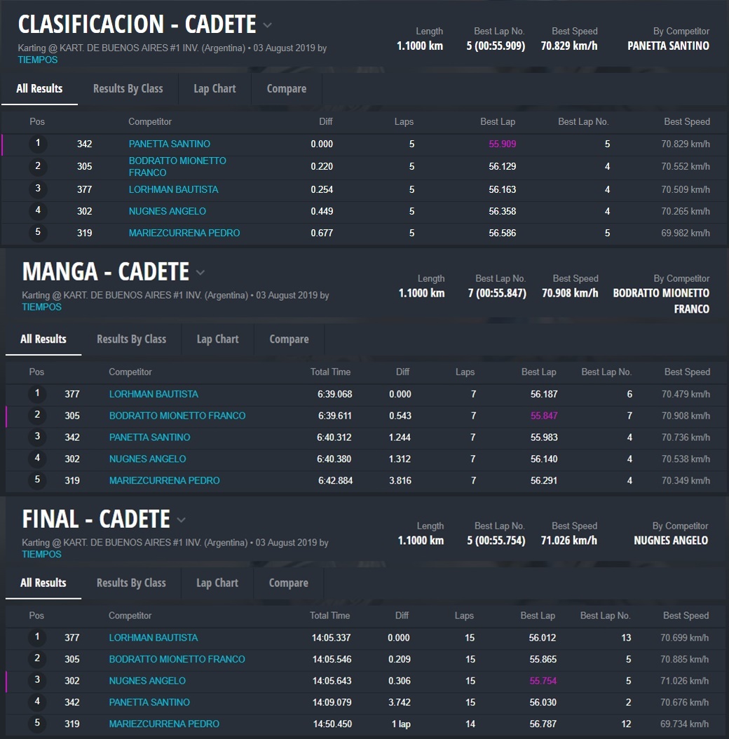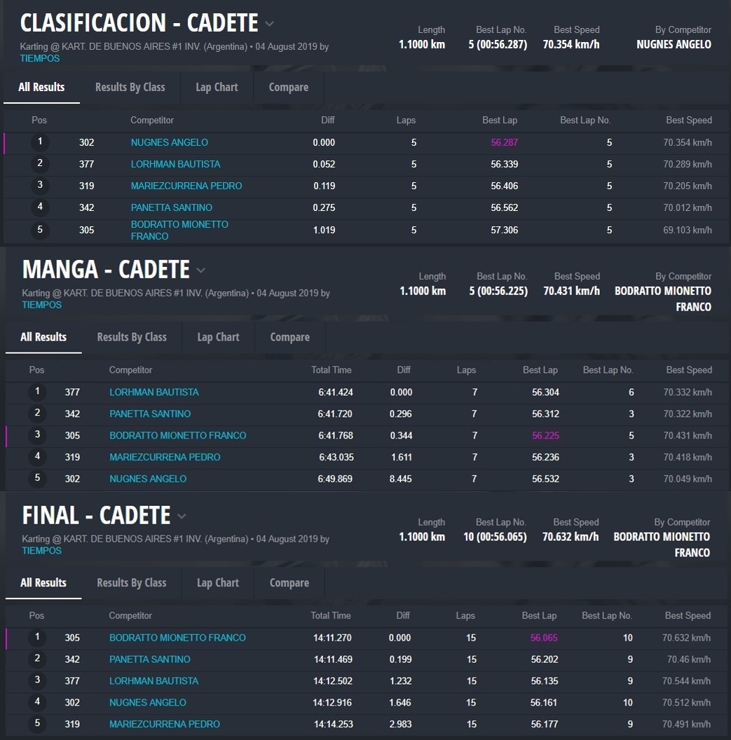 Cuarto arribó Angelo Nugnes, el flamante campeón Cadete, que hizo un carrera inteligente, sin rozarse con ningún rival y ganado una posición respecto a Mariezcurrena.