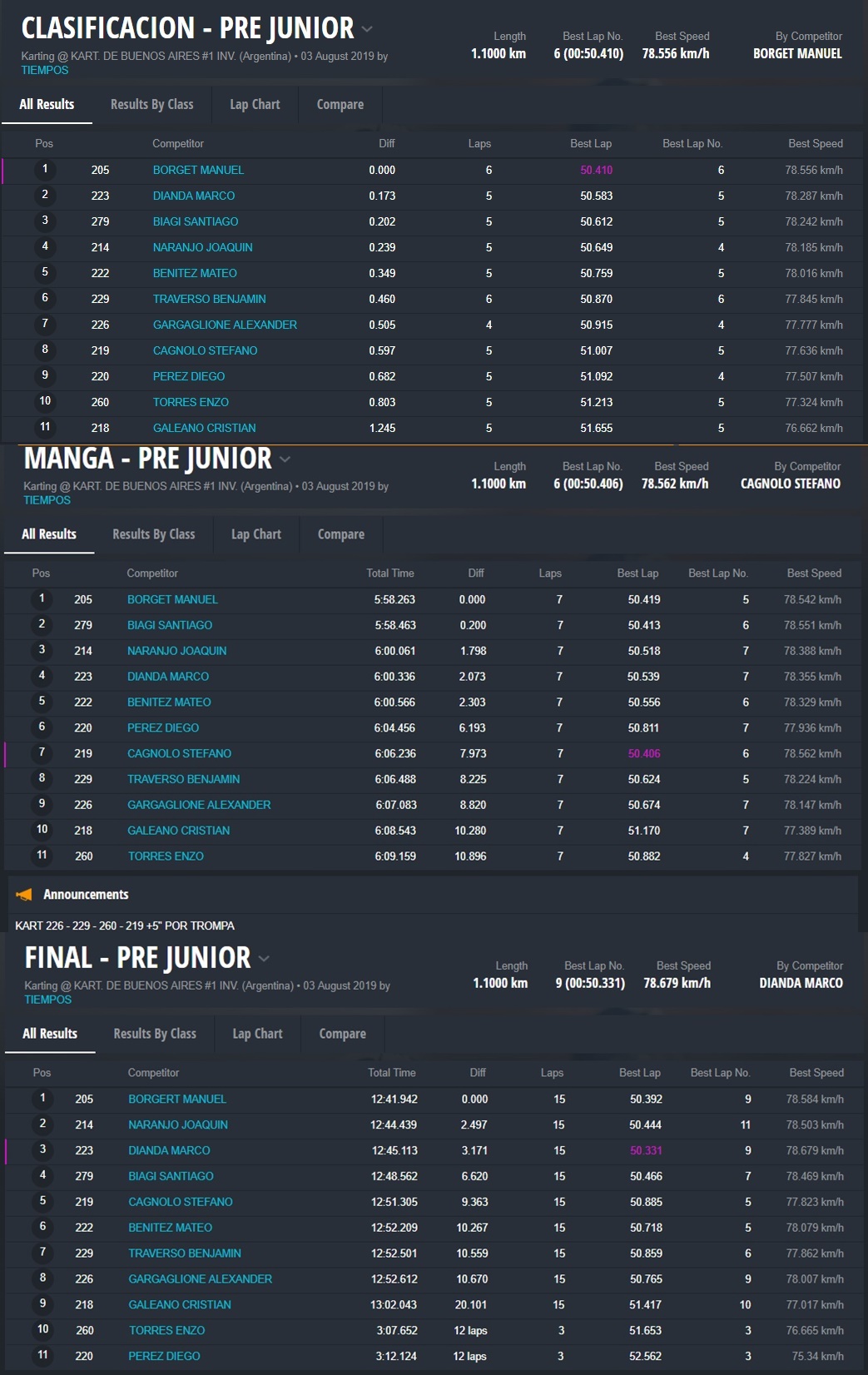 Por ser campeones, obtuvieron el ticket para participar en la IAME International Final los pilotos Nugnes, Borgert, Stan, Vezzaro y Vivian.