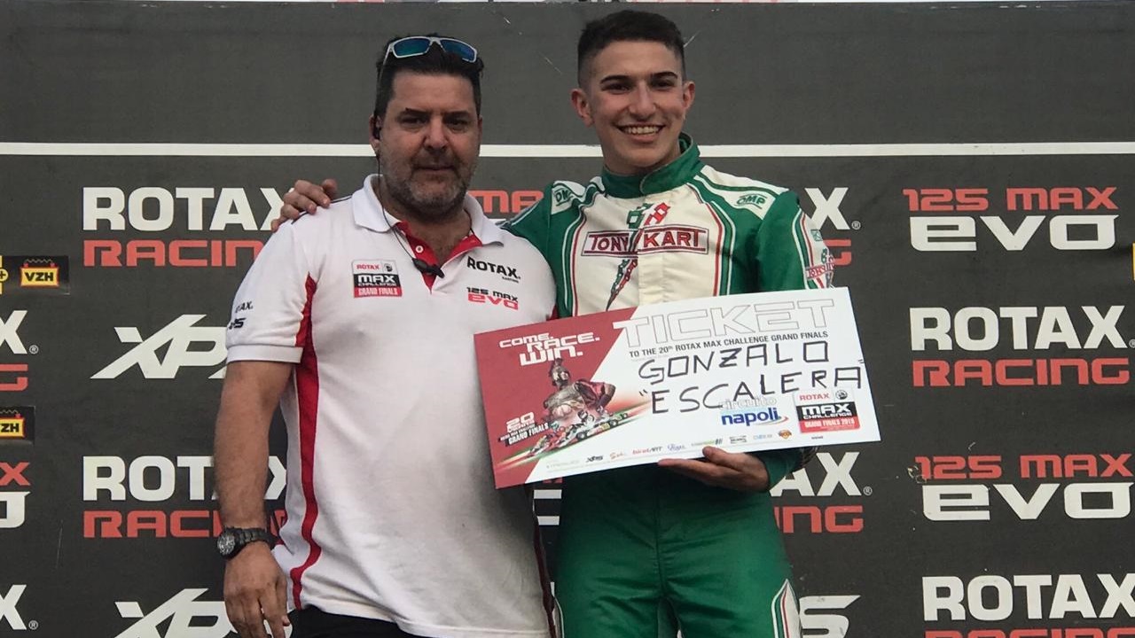 Gonzalo Escalera ganó las dos fechas este fin de semana y consiguió por segundo año consecutivo el ticket para competir en la Grand Finals Rotax (comúnmente llamado Mundial Rotax) que se desarrollará del 19 al 26 de octubre en el Circuito Internazionale di Napoli (Sarno, Italia).