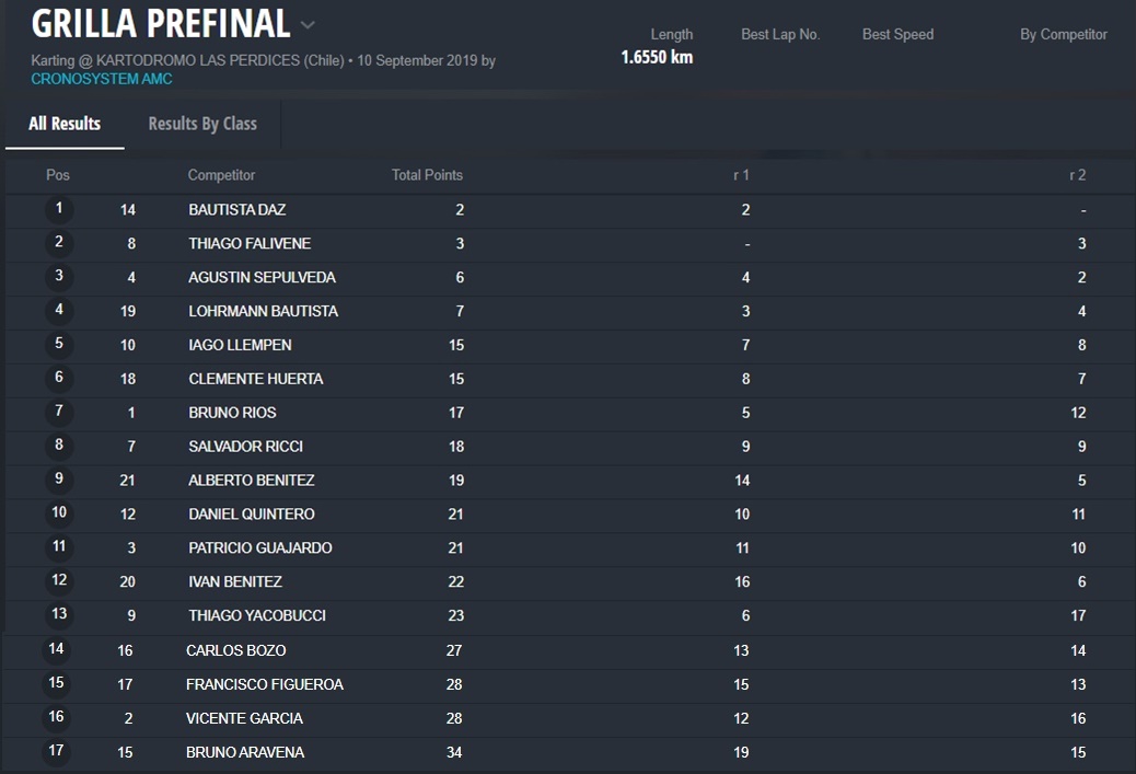 Este Sábado partirán desde la pole position de cada pre final los siguientes pilotos: