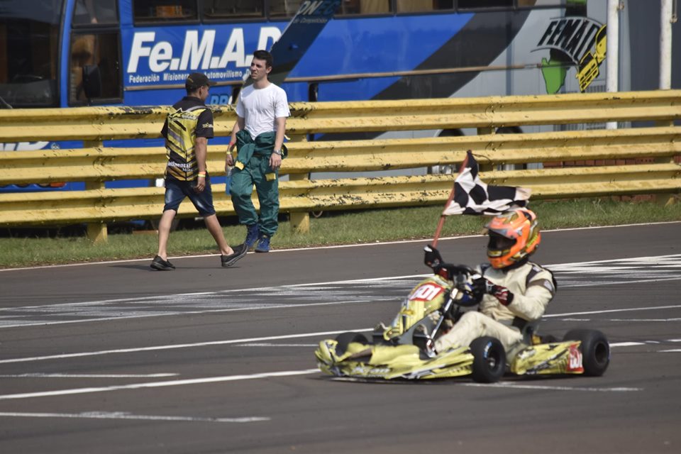 En categoría Escuela, marcó el primer triunfo de la peque Maitena Bustos llevándose el festejo entre los pequeños del Campeonato de Karting Misionero de la especialidad.