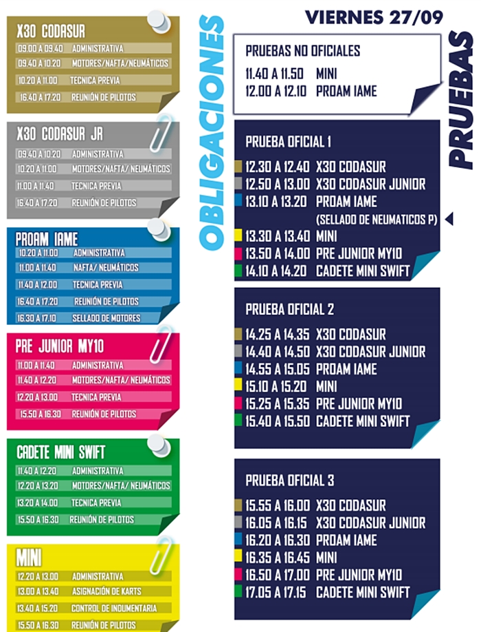 Estarán en pista las categorías Mini IAME, Cadete, Pre Junior, Codasur Junior, Codasur y Proam IAME.
