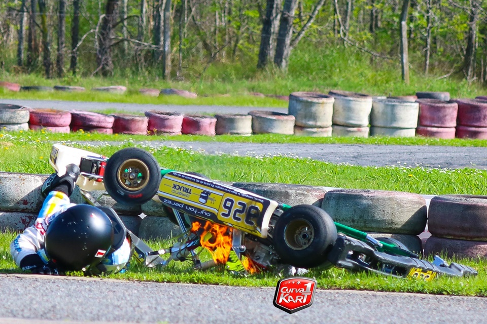 Secuencia del vuelco de Ayrton Pérez en el coronación de Rotax