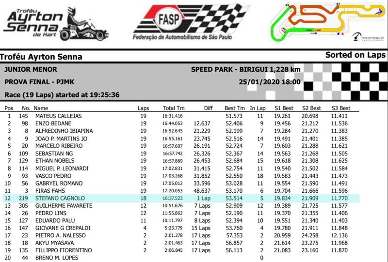 La carrera fue el atractivo del inicio de 2020, primero por ser un homenaje a Senna y segundo porque esta pista será sede en noviembre del Mundial de Karting CIK FIA 2020 para las categorías OK y OK-Junior, a la que muchos sudamericanos esperan acceder.
