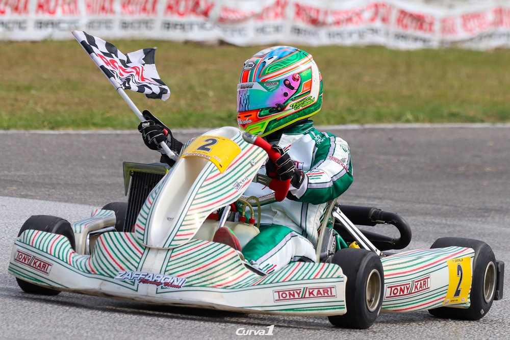 “Chicho” Grimaldi ganó con un muy buen ritmo impuesto por el auto que le entregó el equipo Zaffaroni Kart, mientras que fue segundo el debutante Lucas Bohdanowicz, que el sábado corrió el Junior y el domingo eligió pasarse a Senior. Completó el podio Pilo.