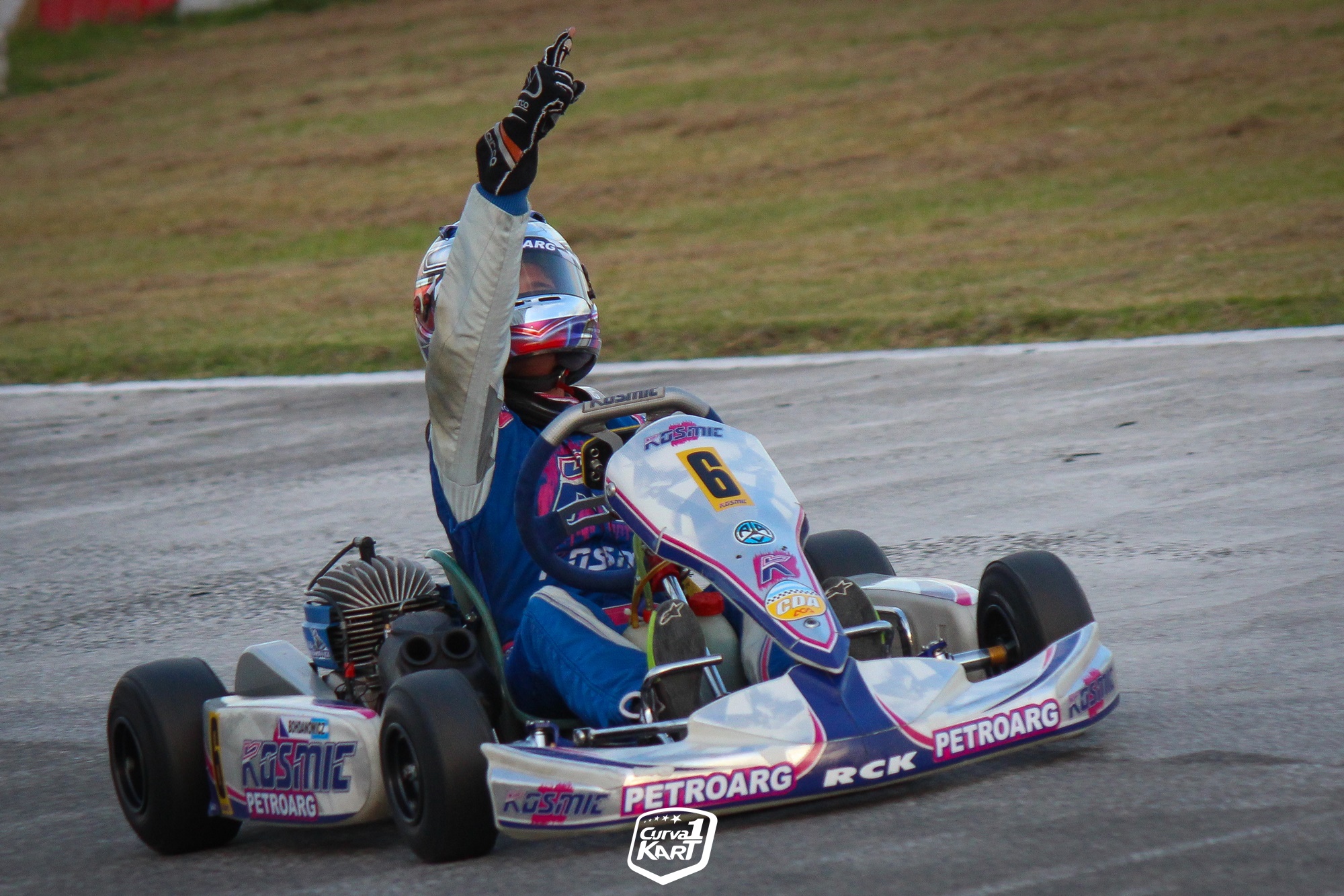 FOTO 4. El chaqueño Lucas Bohdanowicz festeja al cielo su victoria en la serie única. Antes había hecho la pole y fue tercero en la final Promocional que ganó el formoseño Juan Manuel López.