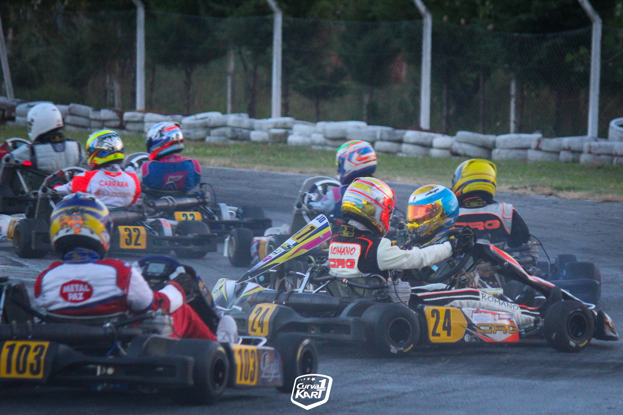 FOTO 5. Enriedos en la largada de la serie Junior entre el riogallense Bruno Romano (24) y el cordobés Alejo Cravero (17). La final quedó para el neuquino Fabrizio Benítez (hoy en Clase 2 del Turismo Nacional), seguido del capitalino Guido Moggia (campeón 2019 Fórmula 2.0 y a punto de debutar en TC2000) y el necochense Matías Capurro (F3 Metropolitana).