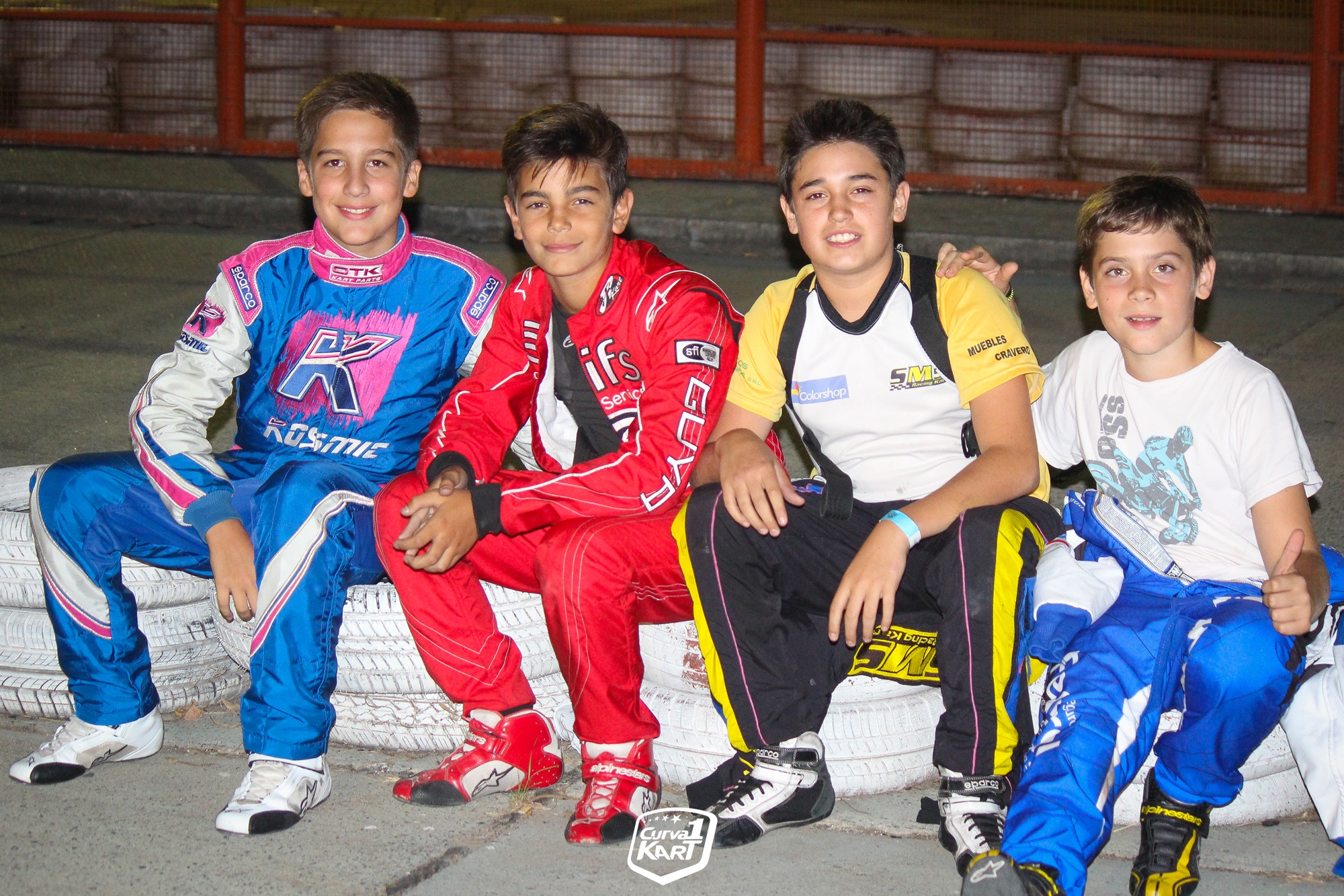 FOTO 7. Animadores de la Pre Junior de ese momento: Juan Pablo Pilo (hoy en TC Pista Mouras), Tomás Spina (abandonó la actividad), el salteño Jeremías Olmedo (TC Pista Mouras) y Franco Colapinto (campeón 2019 de la F4 Española).
