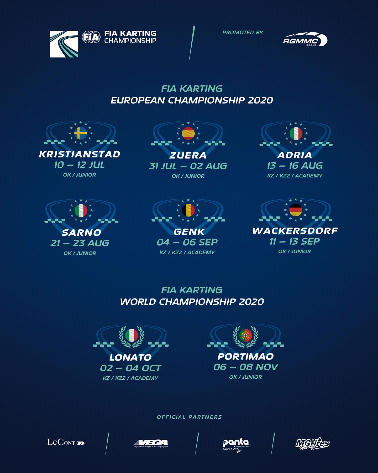 Este es el nuevo calendario CIK FIA para la temporada 2020, recordando que el Mundial OK y OK-Junior que se iba a celebrar en Brasil, ahora será en Portugal.