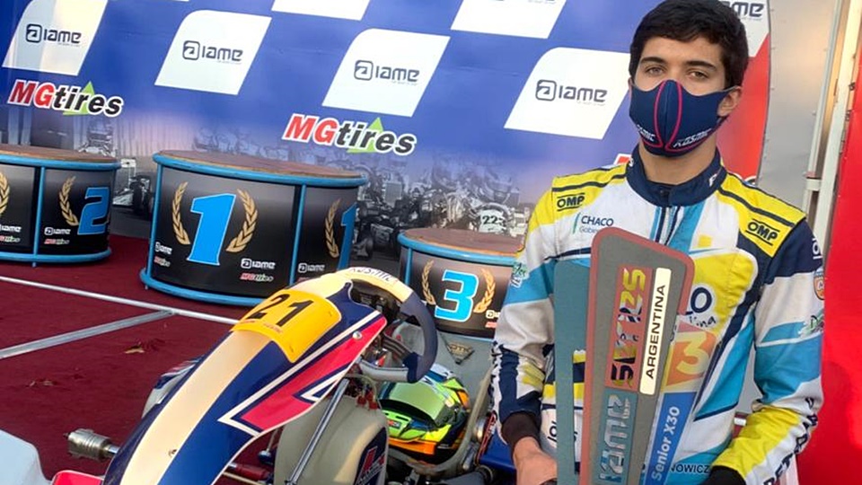 El piloto chaqueño de General Pinedo abrió la temporada de IAME Series Argentina muy bien, con un 6° puesto en clasificación entre 16 pilotos. Fue protagonista en la Final 1, pero abandonó peleando por la punta. En la Final 2 se le dieron las cosas y fue tercero, sumando su primer podio en Senior X30.