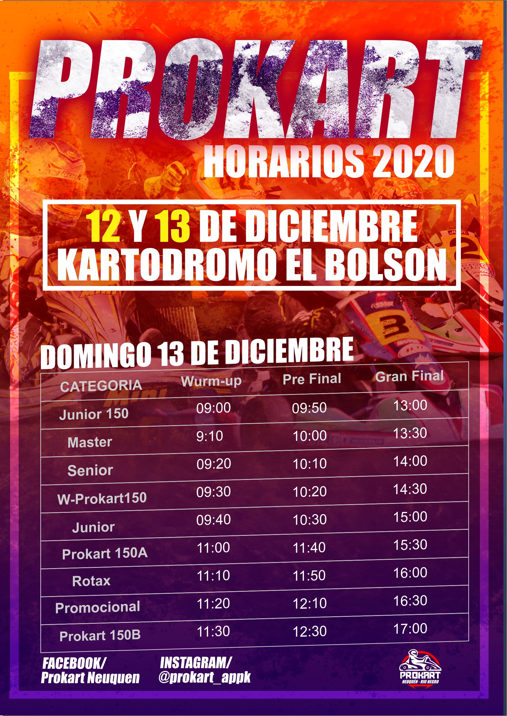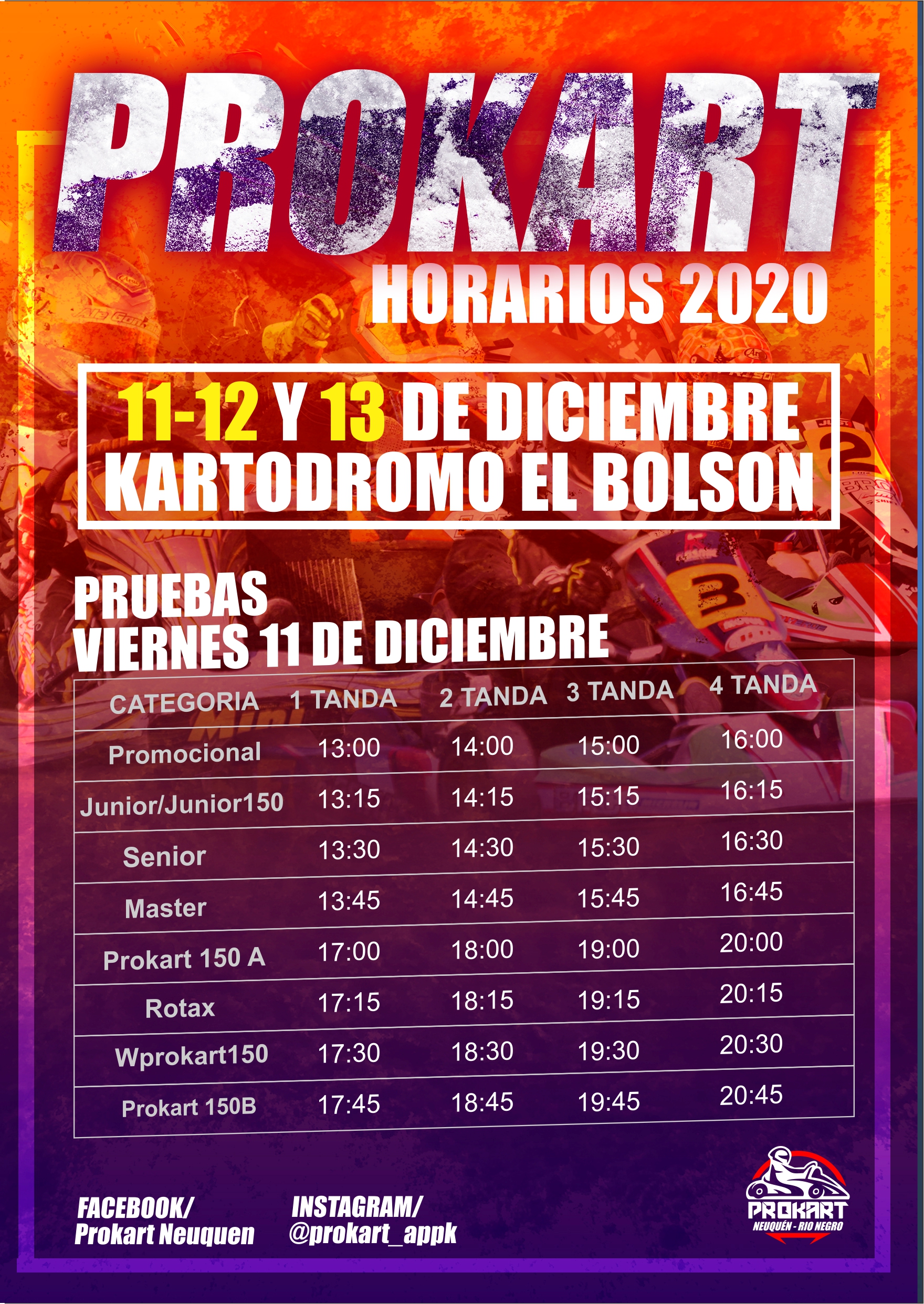El evento del Prokart se llevará a cabo bajo un estricto protocolo de seguridad e higiene, sin la presencia del público. El piloto podrá estar acompañado solamente por dos personas. Todos deberán usar el barbijo y tendrán que respetar los dos metros de distanciamiento.