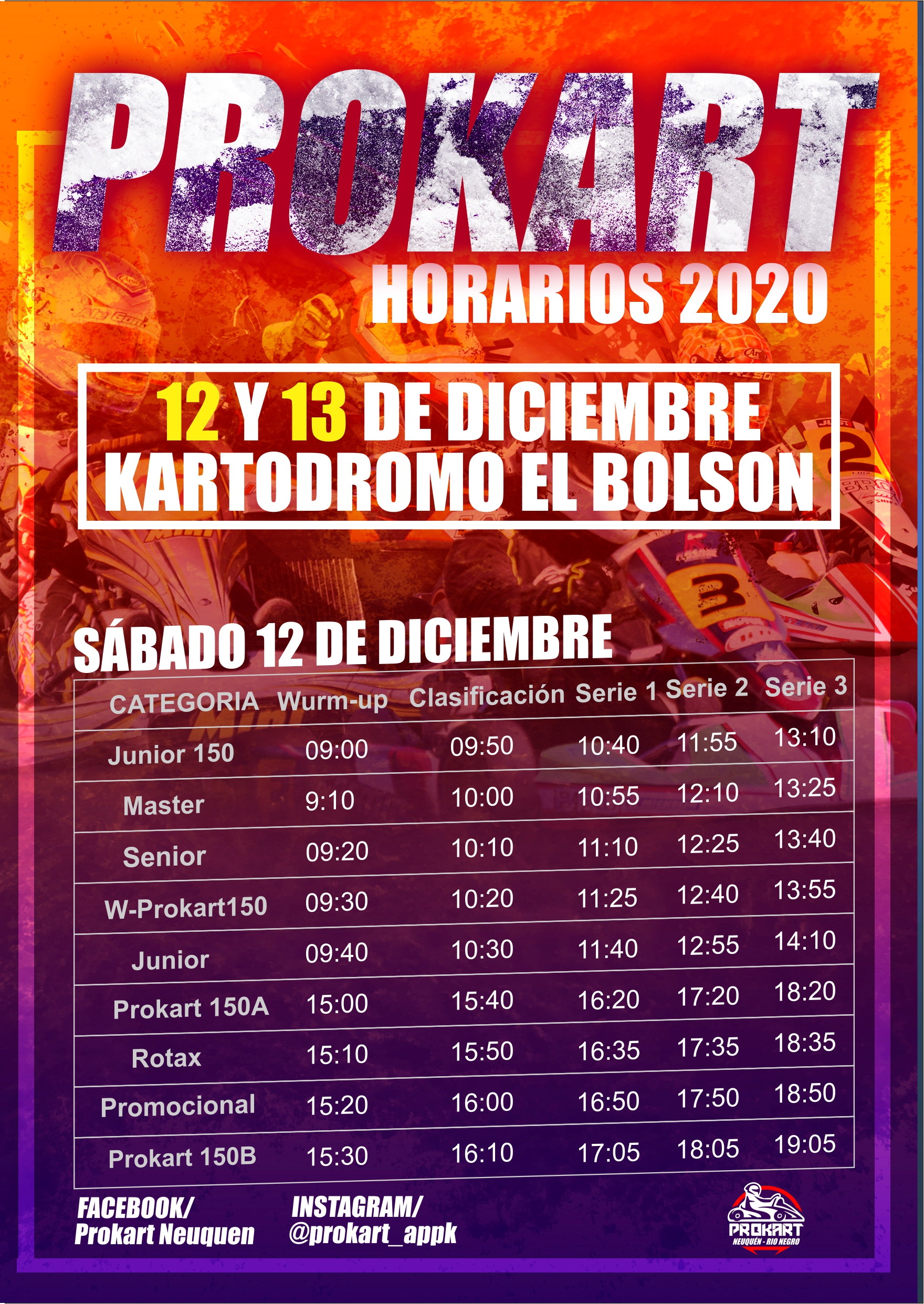 El sábado, se realizarán todas las clasificaciones de las categorías y las series, mientras que el día domingo, se realizarán los warm up y las finales.