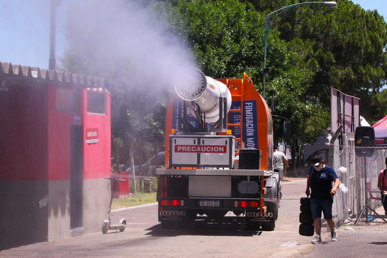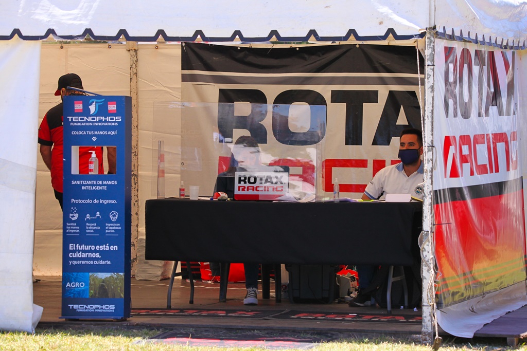 En los ingresos hay pulverizadores para sanitizar a las personas, dispenser con alcohol en gel dispuestos tanto por Rotax como por el kartódromo y la obligación de usar tapabocas. Por los boxes pasó un camión con una turbina sanitizando “a mansalva” como se ve en la foto.