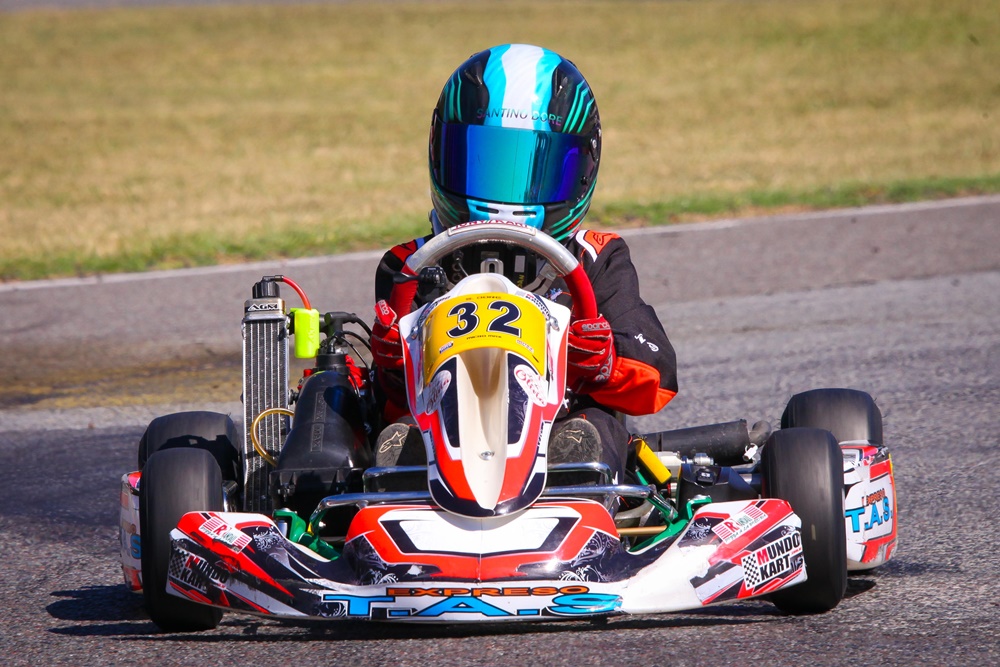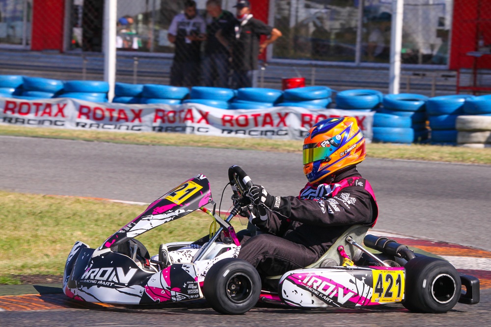 En su primera experiencia en un Sudamericano Rotax, Santino Dore se quedó con el mejor tiempo del miércoles, registrado en su segunda salida a pista.