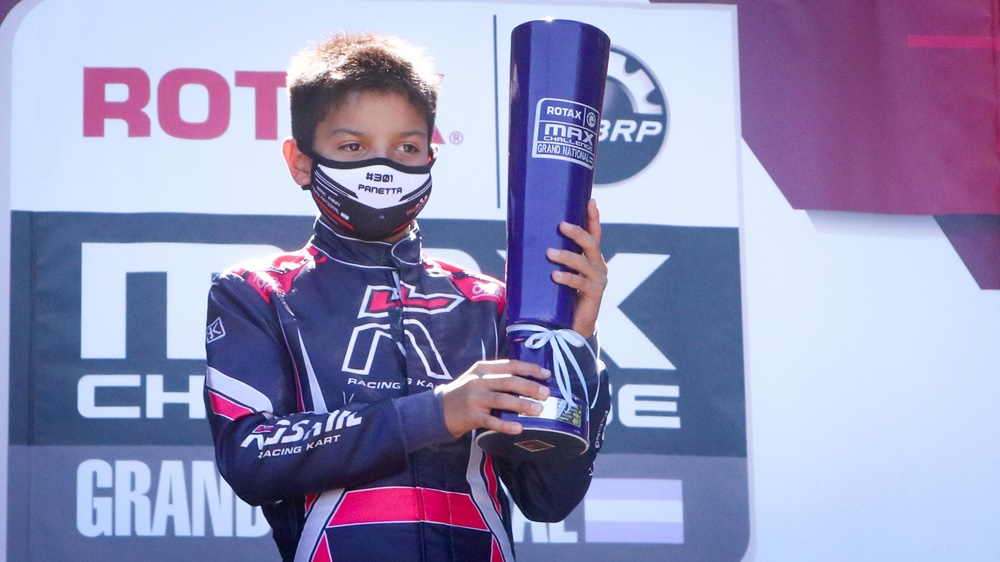 MICRO MAX. El reciente campeón Sudamericano Rotax SANTINO PANETTA comenzó el 2021 con una gran victoria en Rotax Grand National, que se presentó en Córdoba. El piloto de Campana (Buenos Aires) ganó todo en la categoría Micro Max y se llevó puntaje perfecto de Colonia Caroya.