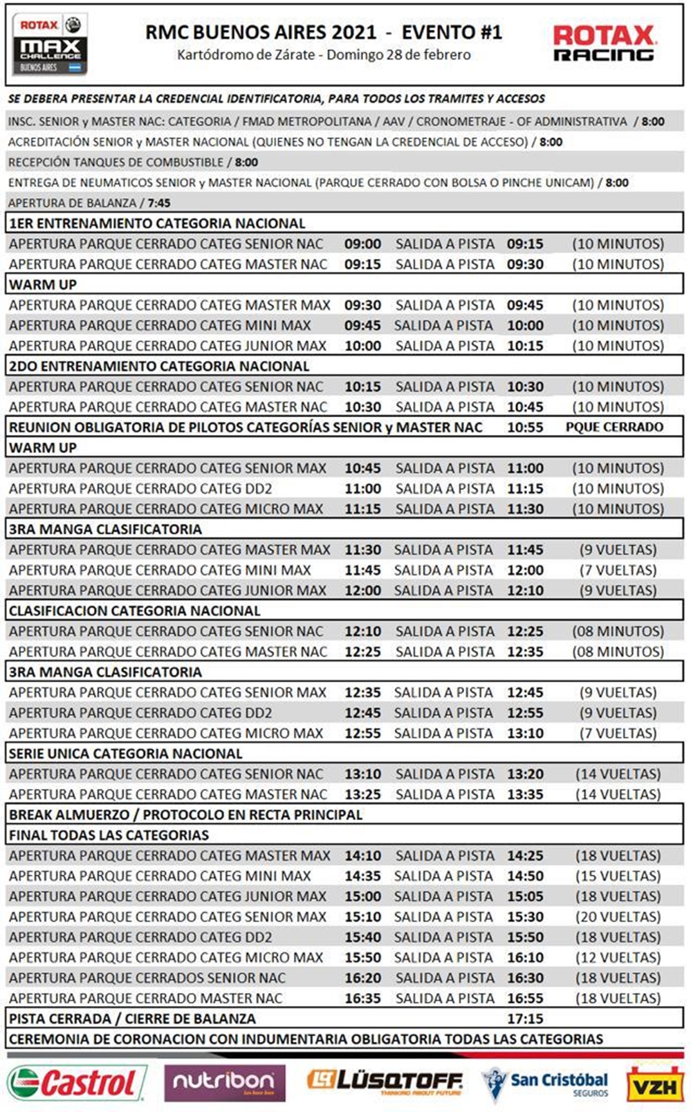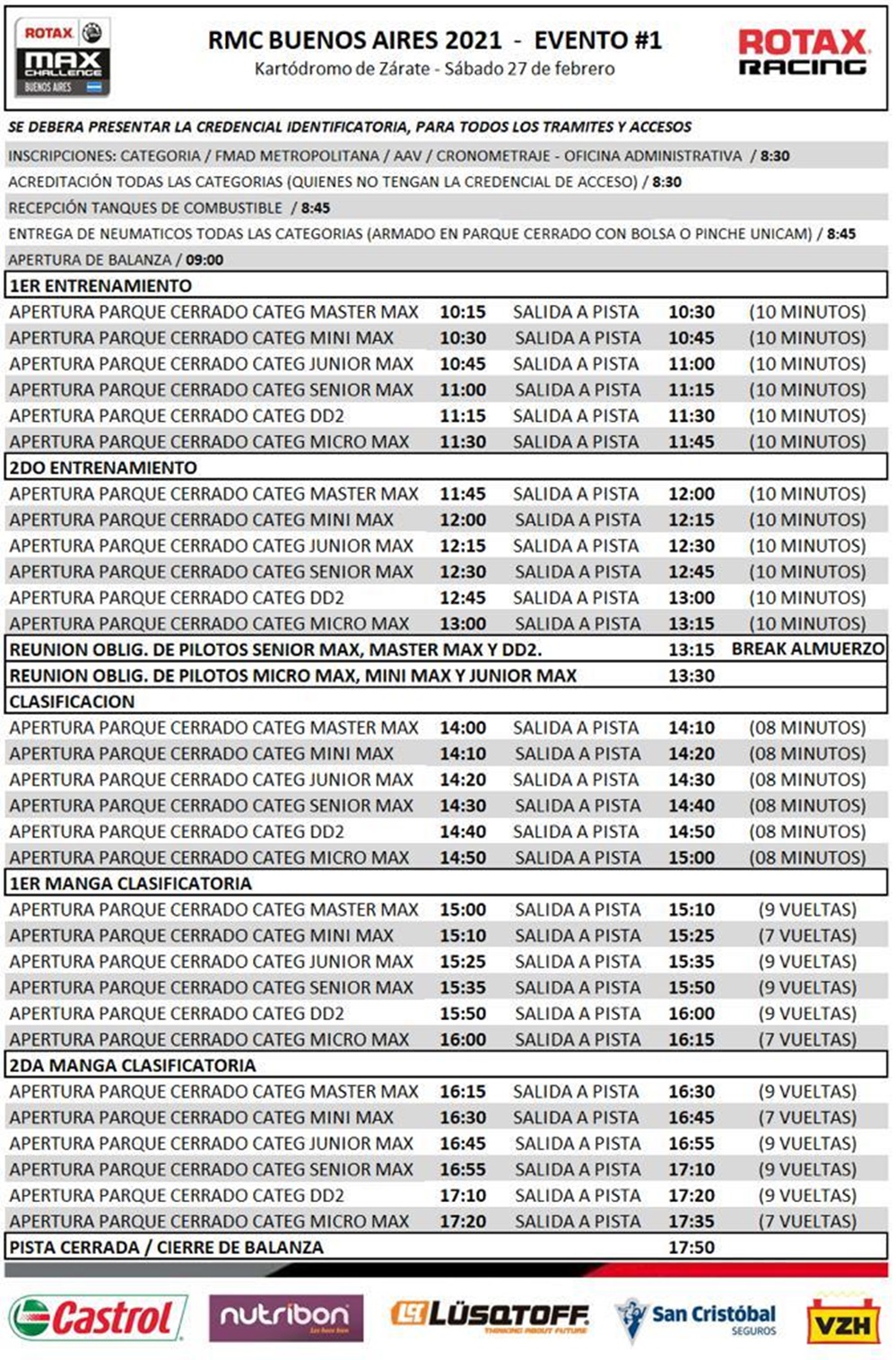 Desde la organización informaron algunos ítems importantes y aclararon que las restricciones de ingreso a la competencia son impuestas por el Municipio de Zarate. NO lo regula la categoría y NO lo regula el kartódromo.