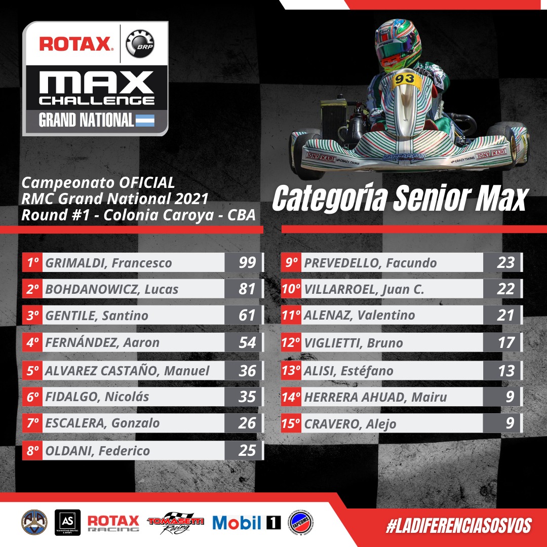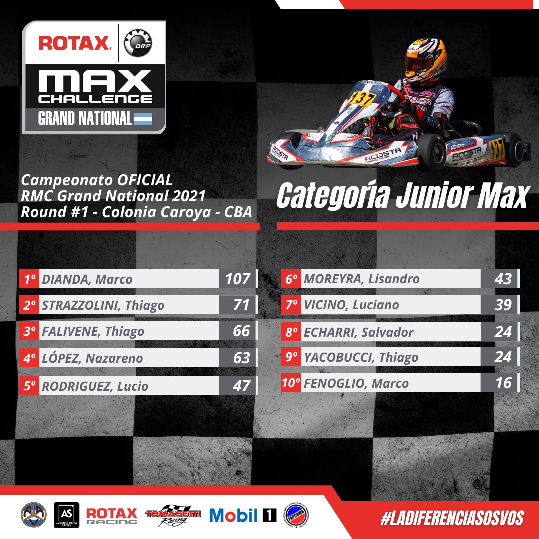 Son líderes el cordobés Marco Dianda en Junior, los bonaerenses Santino Panetta (Micro Max) y Javier Polvera (Master Max), más el misionero Francesco Grimaldi en Senior Max.