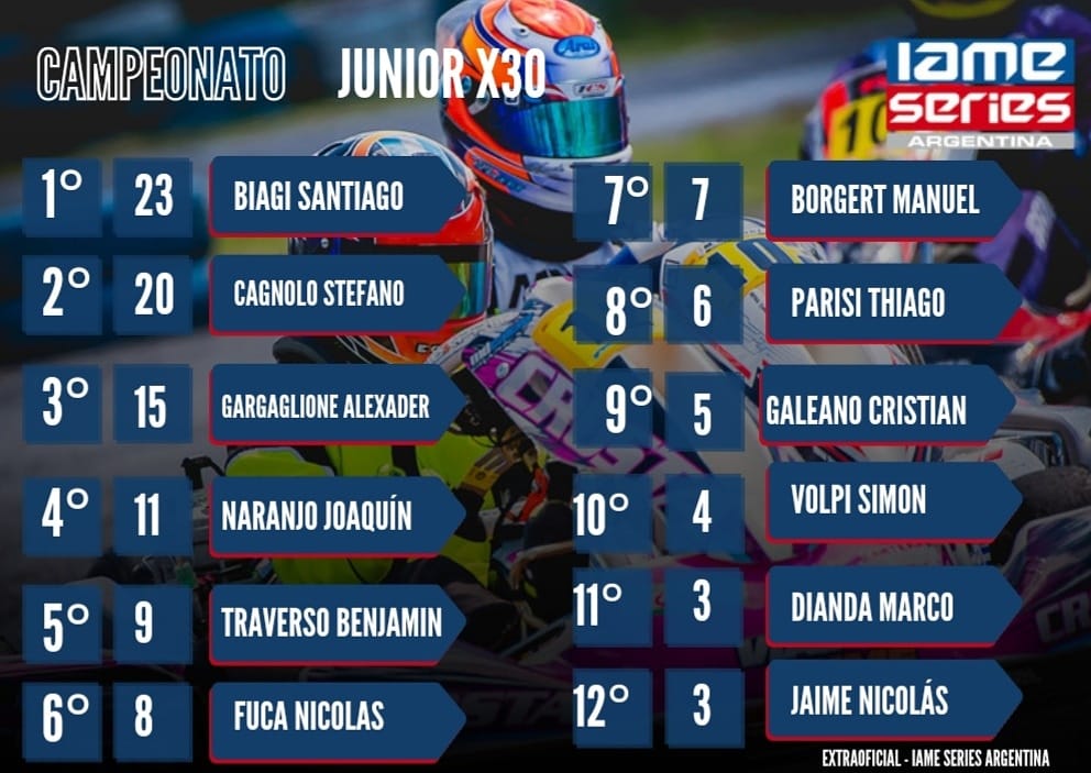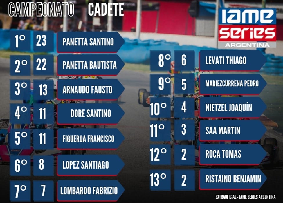 IAME SERIES ARGENTINA · 20/03/2021 Campeonatos luego de la fecha apertura en BA Comenzó el campeonato Champion Cup de IAME Series Argentina y te mostramos como están las tablas, luego de la carrera apertura del 2021. Estadísticas difundidas por la organización.