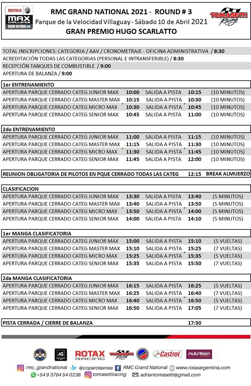 A esta fecha llegan como líderes Santino Panetta en Micro Max, Marco Dianda manda en Junior Max, Francesco Grimaldi lo hace en Senior Max y Javier Polvera en Master Max.