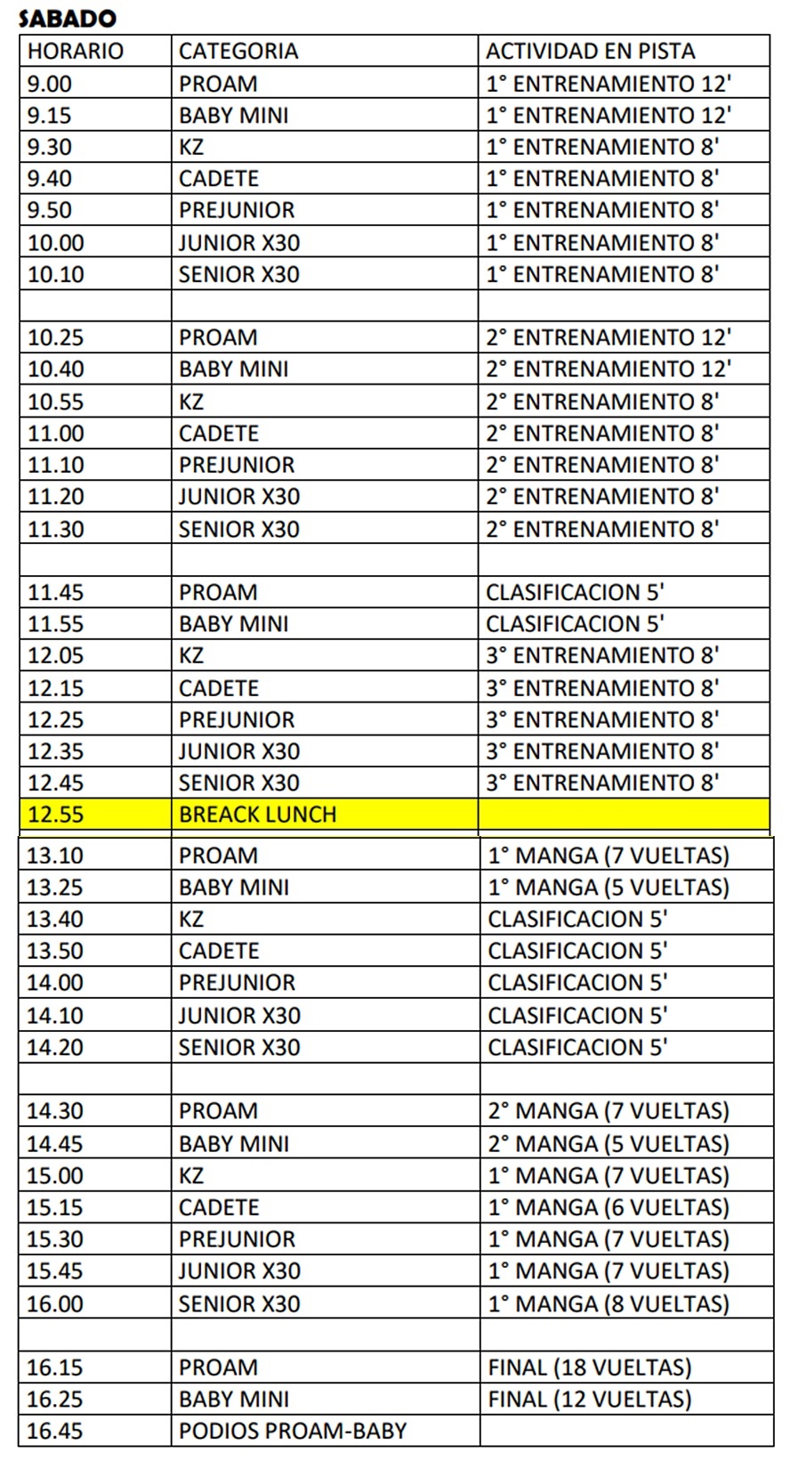Las categorías Baby Mini y Old School Senior continúan con actividad exclusiva para el sábado y la Old School Master para el domingo únicamente.