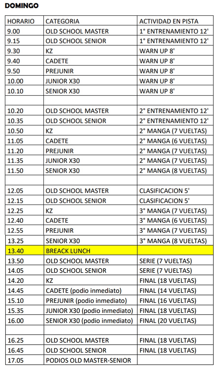 A continuación te mostramos como será el nuevo cronograma de actividades para la Fecha 3 de IAME Series Argentina y los “KZ” de la Copa Modena Engine Argentina.
