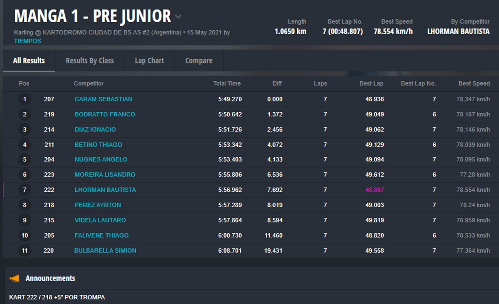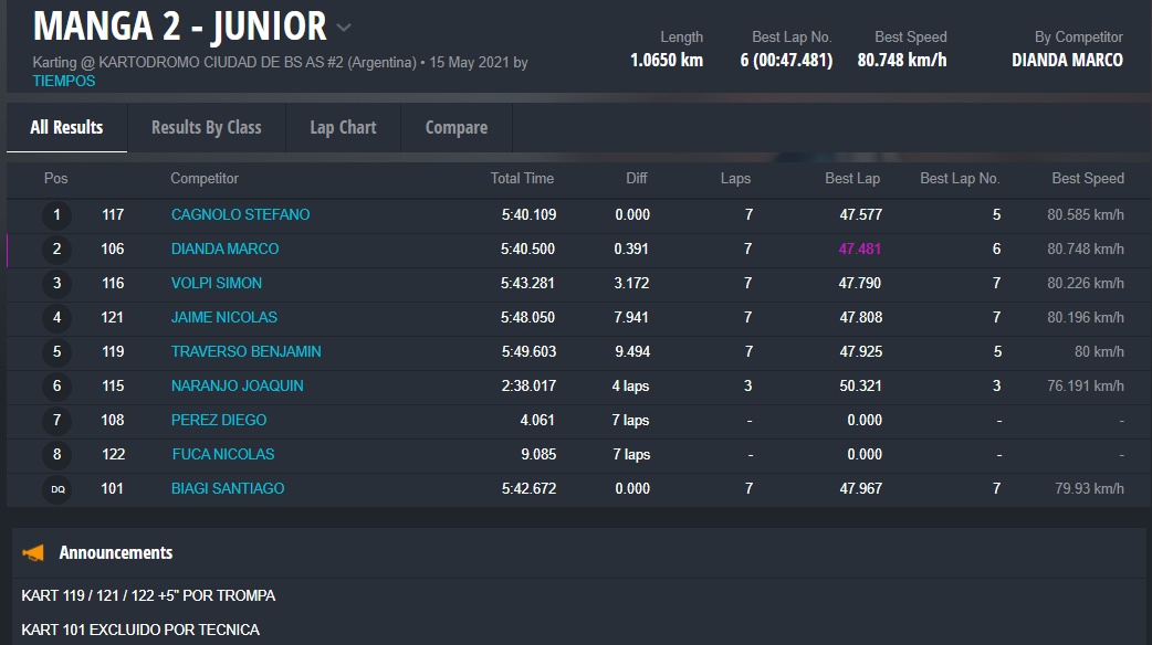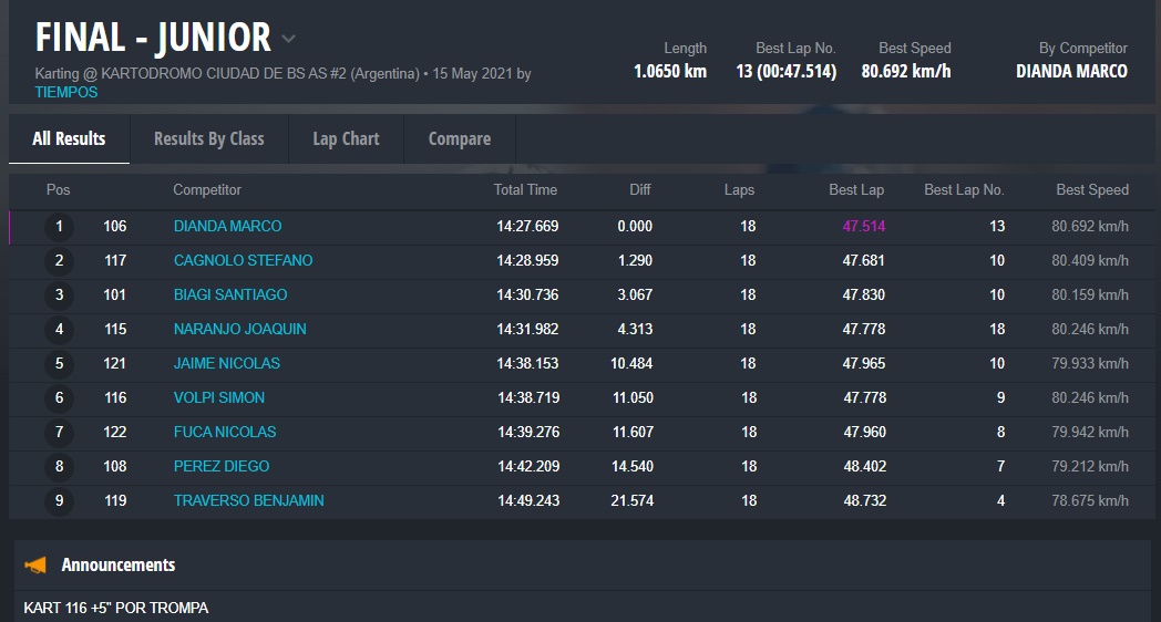 Fue notable la presencia de pilotos de todo el país, llegando a una cifra de 125 pilotos que transitaron el circuito 2 horario del Kartódromo de Buenos Aires.