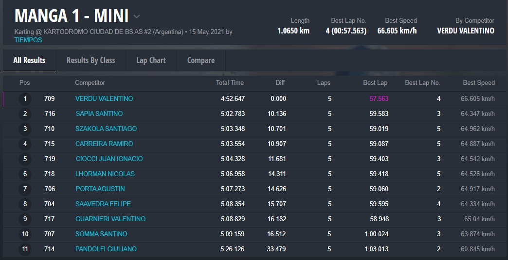 El sábado se realizó la fecha completa para las clases BABY MINI, donde Valentino Verdú (Al Kart) ganó por segunda vez en el año y es más puntero que nunca. Verdú fue acompañado en el podio por Santino Sapia y Santiago Szakola.