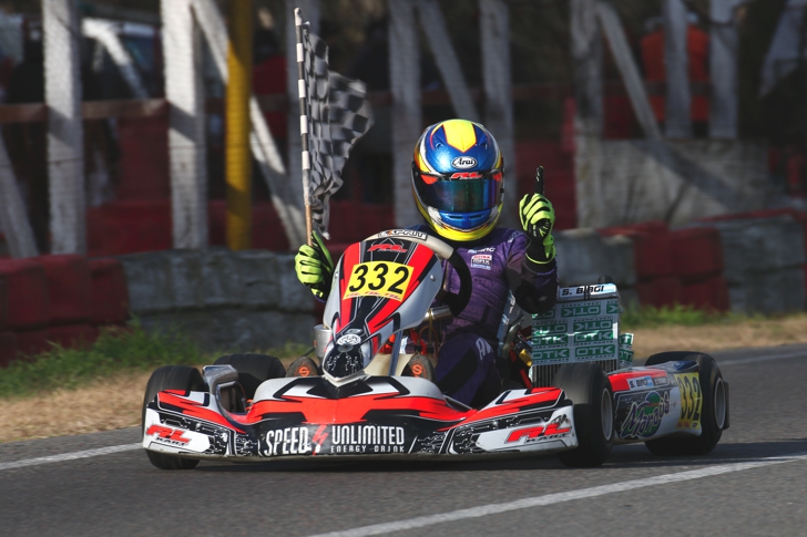 Santiago Biagi ganó todo lo que hubo en pista, en lo que representó su debut en esta divisional junto al equipo Al Kart liderado por Leandro Agüero.