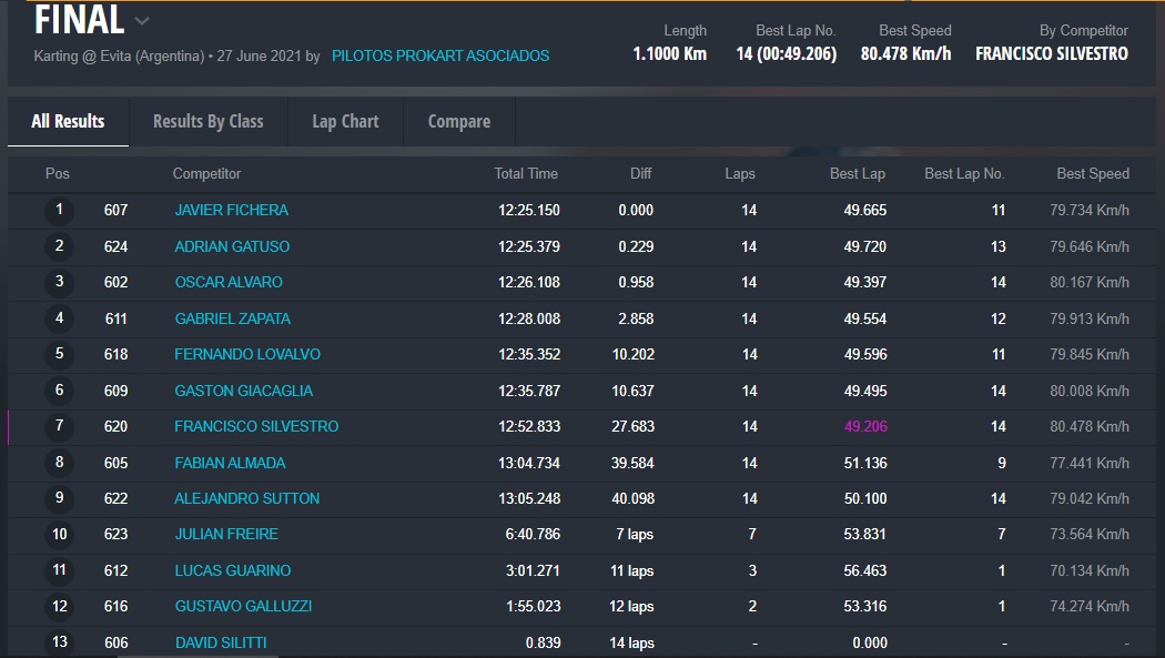 El domingo hubo tres nombres adelante. Francisco Silvestro se llevó la pole, Gustavo Galuzzi la serie con récord de vuelta, y Fichera la final, con récord para Silvestro que fue séptimo.