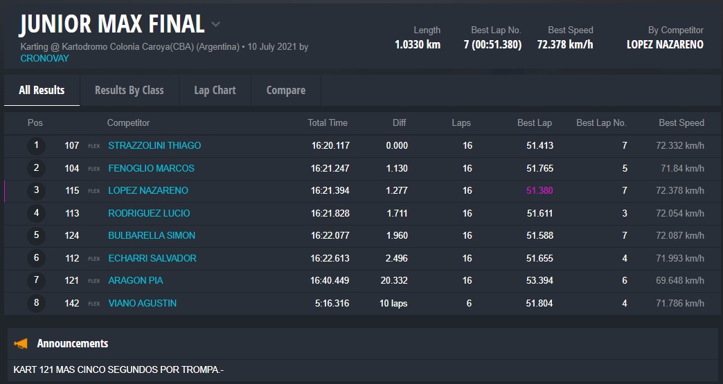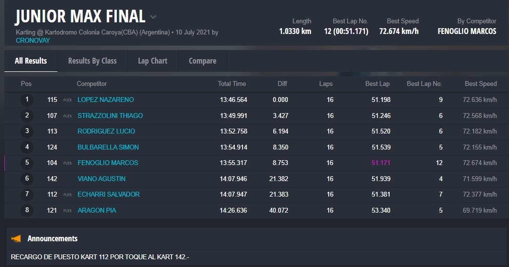 En la Junior, el cordobés THIAGO STRAZZOLINI (Zaffaroni Kart) se quedó con la pole position y final del sábado, mientras que el entrerriano NAZARENO LÓPEZ festejó a lo grande en la quinta fecha de la temporada, ganando todos los puntos del domingo.