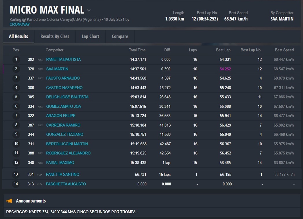 El bonaerense BAUTISTA PANETTA tuvo un finde “perfecto” ya que se quedó con todos los puntos en juego de las dos carreras que pisaron el asfalto caroyense. MATÍAS RODRÍGUEZ también festejó dos veces, pero dentro de la categoría Master Max.